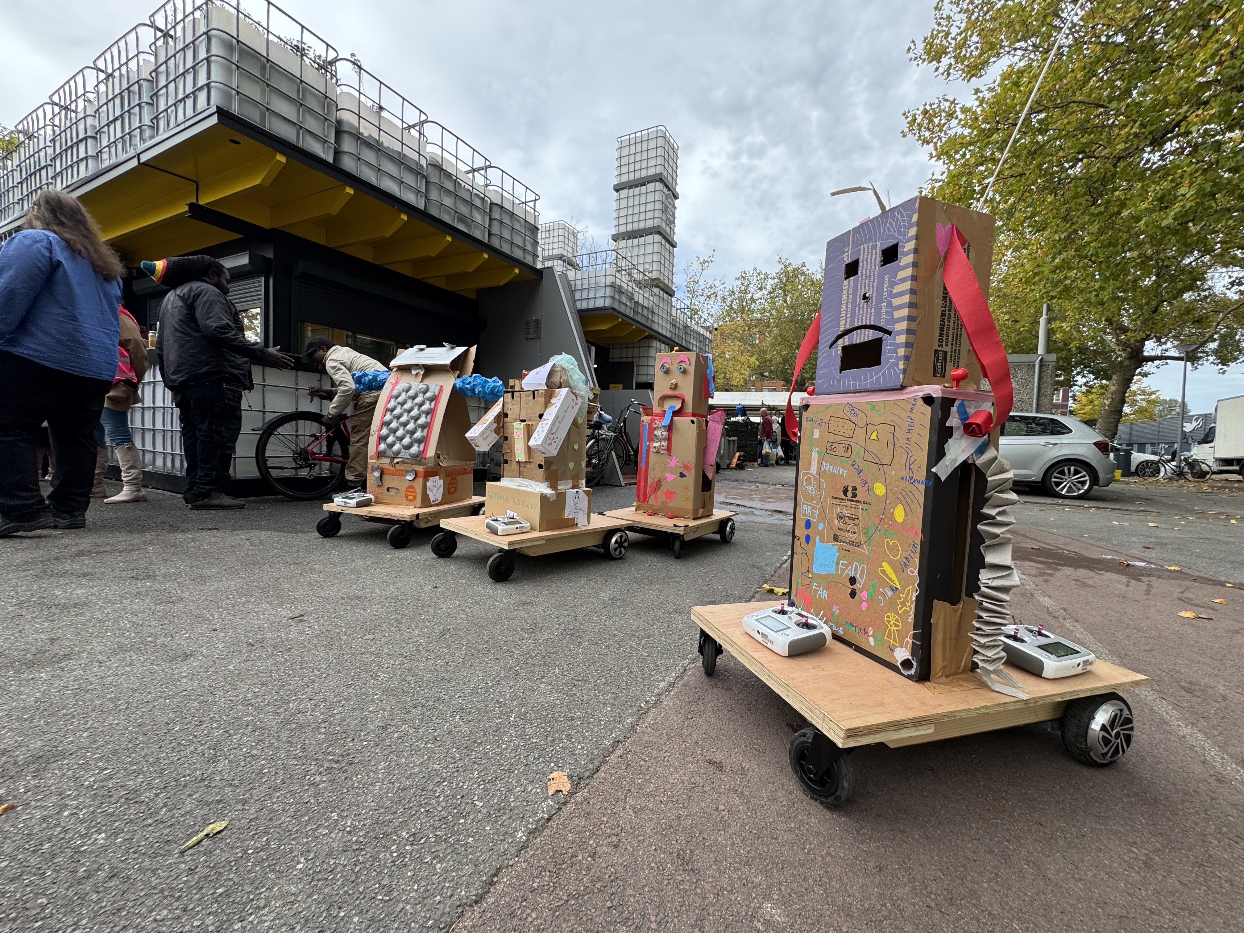 Wijkcooperatie Afrikaanderwijk took the WijkbotKit to organize two workshops, one with kids. and one Woonstad employees. The results from the kids where part of the parade on 16 October at the open day.